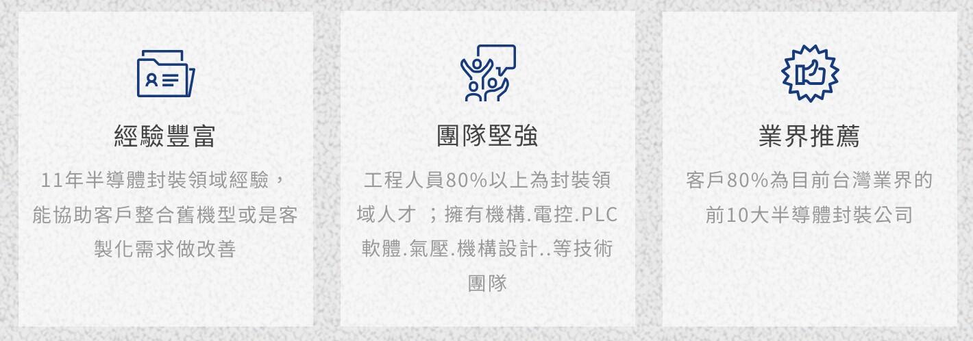 半導體封裝設備「整合與改善」的專家捷美精密工業有限公司,主要服務矽品、南茂科技、京元電子、艾克爾、日月光等各半導體廠,具備設備專案設計人才,包含業務、工程與製圖部門等,協助開發多樣化半導體業務,並針對不同需求客製化。